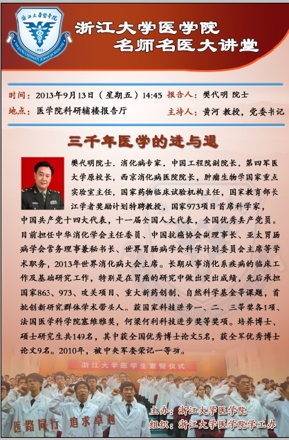 医学院名师名医大讲堂(第一讲)——樊代明院士讲座的通知