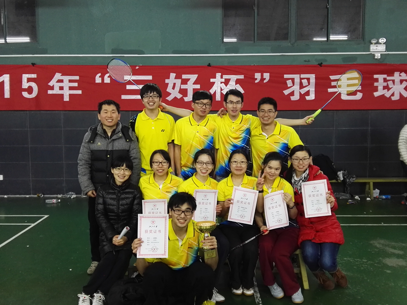 2015年11月28日至12月5日,浙江大学三好杯羽毛球比赛(研究生组)在玉泉校区体育馆举行。由应晓钢带领的医学院羽毛球队代表医学院参加了此次活动。比赛中队员们不畏严寒,团结一致,奋勇拼搏,凭借扎实的功底和精妙的战略最终获得了团体第一名的优异成绩。个人赛中,面对强大的种子选手,医学生们以优良的心理素质,一步步稳扎稳打,累计获得了2个第二名,2个第六名,1个第七名及1个第八名的好成绩,总分排名第二。