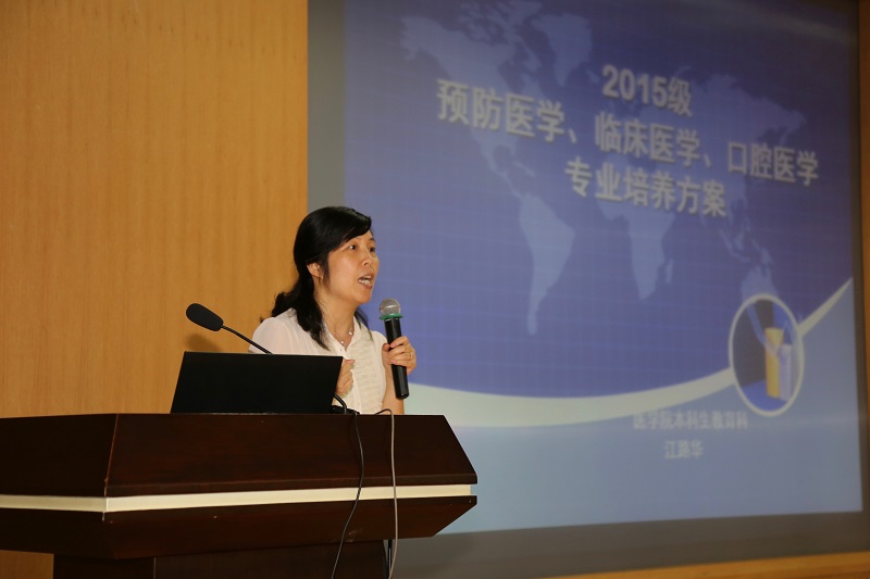 医学院本科生科副科长江路华老师为医学生们讲解了专业培养方案、选课、实践课程、出国交流等事项。