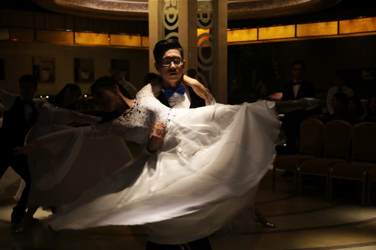 开场歌手的倾情献唱掀起了舞会的热潮。绚丽缤纷的灯光如冬日和煦的阳光般温暖地洒在每一位14级学生容光焕发的脸庞上。从你的全世界六过队,亨丁顿舞蹈队,吾五舞队……别具一格的队名令我们不禁为医学生的创意点赞。而在舞池中,他们身姿曼妙,旋转跳跃,微微一笑、尽己所能展现最美的姿态。