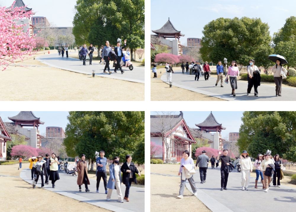 大家或结伴而行,边走边聊,分享工作生活中的趣事;或独自漫步,沉浸在这份宁静与美好之中。沿途,求是园早春的梅花竞相绽放,教职工们在健步走的同时,也能欣赏到梅花的娇艳与芬芳。